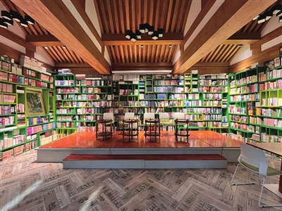 人天书店集团结合卢沟桥的“红色”背景,打造了一家军事类“军绿色”主题书店,使和平书店成为集图书、咖啡、文化传播于一体的地标性综合书店。此外,和平书店不仅发挥着书店的功能,还承担着社会文化空间再造的职能,在活跃当地阅读文化氛围、传承爱国主义教育方面发挥着作用,为宛平古城增添了一抹军绿色。