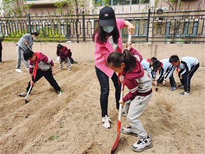 “我们希望学生感受劳动快乐的同时,也能享受幸福的亲子时光。”孟彬说,菜地既搭建起父辈与子辈、祖辈与子辈交流的平台,也给祖辈与父辈亲密相处提供了契机。二年级学生孙绕图的爸爸说:“有时候会觉得老人的思维落后了,与他们的距离也越来越远。但是在种地这件事上,我的父母重新有了话语权,我又找到了小时候跟父母亲密交流的感觉。”
