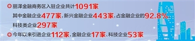 截至目前,丽泽金融商务区入驻企业共计1091家,其中金融企业477家,新兴金融企业443家,占金融企业的92.8%,科技类企业297家。国家数字金融技术检测中心、银河证券、长城资产、中国通用技术集团等一批重点金融机构和科技企业纷纷入驻。尤其是今年以来,引进企业112家,金融企业17家、科技企业53家。全国注册资本最大的保险公司瑞众人寿、证券行业管理规模最大的资产管理公司中信证券资管相继落户丽泽,为区域经济高质量发展注入强大动力。