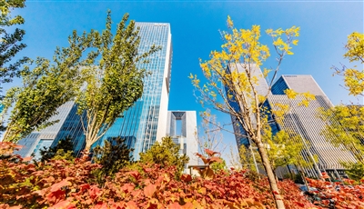 丽泽金融商务区的树木被北风染出或霜红或金黄的色彩。原梓峰 摄