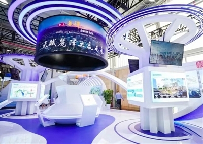 在2023年中国国际服务贸易交易会的亮相的丽泽金融商务区展区。