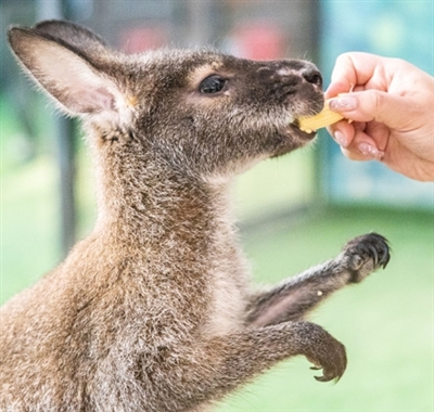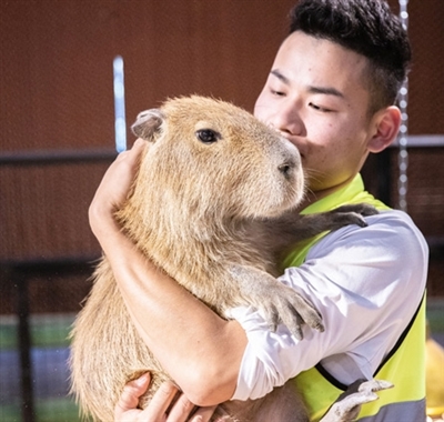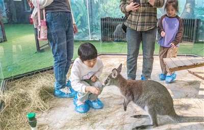 走进南美展区就仿佛来到密林深处,因植被丰富,气候湿润,这里隐藏着多位新晋的“动物网红明星”,带给前来参观的游客新玩法、新体验。今年4岁的王蓁蓁小朋友正在工作人员潘豪的带领下拿着草饼投喂着动物界的“万人迷”水豚,“水豚是非常温顺的小动物,只要俯下身轻轻地抚摸,它们就会自然而然地和人亲近,深受小朋友们的喜爱。”潘豪说,“我之前在湖南学习动物医学专业,来到北京地球学院实习期间感受到这里完全不像印象中只能隔着铁笼观赏的动物园,更多的是让大小朋友在和小动物近距离接触中感受物种的神奇和自然的魅力。”