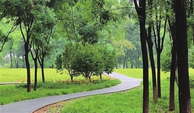 在建设中,对渣土山进行了生态修复,过去渣土堆成的山,已经陆续被树木、鲜花、绿草覆盖。在绿化种植时,保留了原有林地树木,同时以国槐、油松、白皮松等为主要树种,营造出接近自然的风景林。
