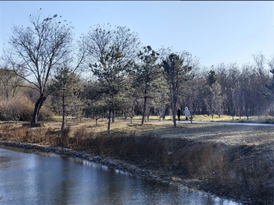 居民吴女士正陪母亲在园内水系景观旁散步,她们将全身裹得严严实实的。“今天确实很冷,但是来南森遛弯儿成了我们每天必有的项目,公园就在家门口,还不收费,环境又好,顶着风我们也得来”,吴女士边走边说道。