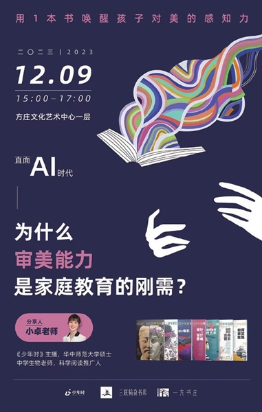 《少年时》阅读推广人小卓老师,与您交流如何用一本书唤醒孩子对美的感知力:走出“程序化”技术培训,用心感受、欣赏艺术之美;美的背后有哪些科学原理的支撑?顶尖艺术家、设计师如何解读艺术?