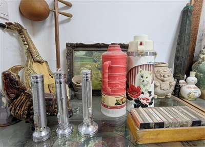 祠堂口、火神庙口、王家口……门洞里挂满了长辛店古镇大街的胡同标牌;石狮子、大瓮、大罐……挤满了小院;鸟笼子、手电筒、录音机……有的放在展柜里,有的放在桌子上。“仓库里也有,箱子里也有,还有好多没法展示,太多了,没想到居民这么热情,甚至还有外地的朋友邮寄过来。”尹喜军指着藏品告诉记者。