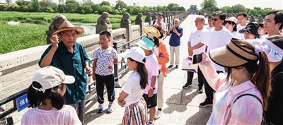 7月5日,全民族抗战爆发86周年纪念日到来之际,“七七事变”亲历者郑福来为往来游客讲述着那段苦难而不屈的历史。从“七七事变”亲历者到讲述人,郑福来用他的坚守传承着抗战精神;用他的讲述提醒人们:“历史就在那里,我们要不忘历史,把抗战精神世世代代传下去。”