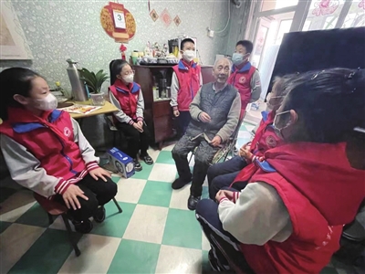 东铁匠营街道少先队员与刘家窑第二社区“小巷管家”志愿者服务队开展志愿服务活动。孩子们围绕在老人身边,拉拉家常、讲讲校园里发生的趣事,带来阵阵欢声笑语。