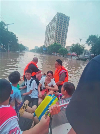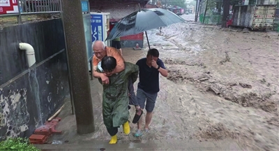 7月31日暴雨期间,北宫镇大灰厂社区将受困的年迈老人背到社区居委会,用实际行动展现出了他们的勇敢和担当。