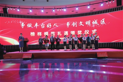 6月15日,丰台区榜样模范礼遇仪式在北京汽车博物馆举行。持续开展礼遇榜样模范活动,加大对道德模范、身边好人礼遇帮扶力度,拓展礼遇方式,做实帮扶措施,持续在全区树立德者受尊、德者有得的价值导向,弘扬社会主义核心价值观,为丰台经济社会发展提供强大的精神动力和丰富的道德滋养。“丰台好人”是丰台区培育和践行社会主义核心价值观、激发全社会向上向善正能量的创新举措,持续打造“丰台好人”品牌,以习近平总书记给“中国好人”重要回信精神为主要内容,发掘“平凡工作中创造不平凡的业绩”的典型人物和丰台百姓身边的好人好事,涌现出百余名“丰台好人”。为丰台加快实施“倍增追赶”,推进高质量发展提供强大精神力量。