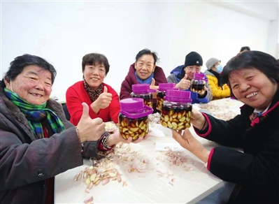 现场居民们围桌而坐,一边动手剥蒜瓣,一边相互分享着腌制腊八蒜的经验。一会儿的工夫,一瓶瓶富有年味的腊八蒜就制成了。不仅如此,社区为居民们熬制的腊八粥也出炉了,大家品尝着一碗碗香暖四溢的腊八粥,甜在嘴里,暖在心头!