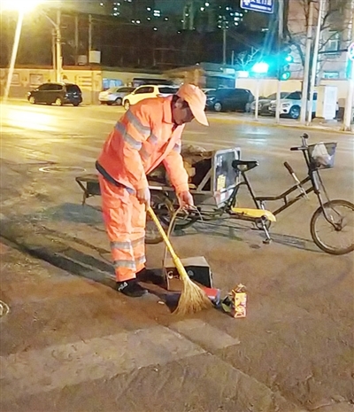 2月9日除夕夜,在万华街,一线环卫职工吴光友、胡福奎、赵久春正忙着清扫道路。这几天,他们从大清早就开始对路面进行清扫和捡拾绿化带里的果皮、纸屑及塑料袋等白色垃圾。经过他们的几轮清扫管护,路面显得格外干净整洁。丰台环卫所所长向记者表示:“每年春节前,我们都会对负责的道路进行全面清扫,认真做好辖区内道路、绿地、过街天桥、地铁站口、垃圾收集设施等清扫保洁管理工作,并重点保障好丰台火车站周边的道路,为旅客出行提供环境便利。”“虽然除夕夜不能和家人团聚,但能在这个特殊的日子把马路清扫得更干净,让大家开开心心过春节,我们也很开心。”干路职工胡师傅憨厚地笑着告诉记者。