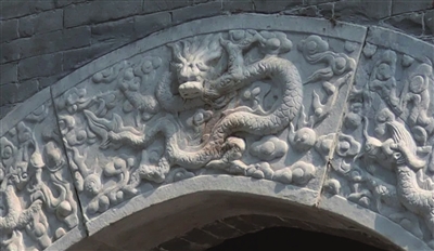岱王庙门首弧顶正中雕刻的腾龙