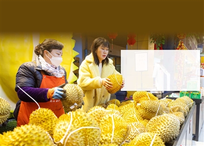 “现在国际榴莲馆的前身是2009年成立的海南木瓜厅,客户群相对比较窄。近几年各种进口水果大量涌入中国,去年我和合伙人筹划把海南木瓜厅升级改造成现在的国际榴莲馆,榴莲品种更丰富,价格更亲民了。马来西亚、泰国、越南、菲律宾等许多主产榴莲的东南亚国家的头部商家都会找我们合作。他们将产品运到国际榴莲馆,我们再帮他们销出去,主要是马来西亚猫山王、泰国金枕、越南干尧等品种,春节前的价格从每斤28元到50元不等。”毛勇习讲起了自己创办国际榴莲馆的初衷,“以前国内榴莲贵,是因为从采摘到运输到通关,每个环节都比较慢,容易造成榴莲的变质,商家会把这些损耗加进去。随着‘一带一路’的拓展,以前马来西亚榴莲到中国可能需要15到20天,现在榴莲从马来西亚到中国只需要7到10天。从前空运的泰国榴莲寥寥无几,现在泰国榴莲从树上采下来直接乘飞机到北京进入国际榴莲馆,陆运通关也特别便捷,不但降低了损耗,价位也降低了,更重要的是,保证新鲜度和口感,让北京普通市民也能实现榴莲自由。”