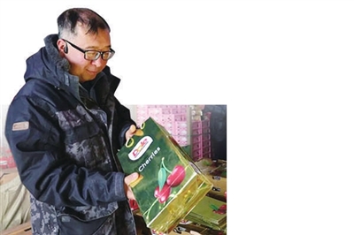 在不间断手机联系业务的空隙,薛福荣回忆说:“我十七八就跟着老乡来到北京闯荡,水果一卖就是20多年,记得20多年前进口水果很稀罕也很贵,也就是东南亚的香蕉、美国的脐橙、蛇果这些,很多人春节期间才舍得买点作为点缀,随着国门越开越大,进口水果也跟着平民化了。车厘子易腐烂、保鲜难,之前主要靠空运,价格一直居高不下,早些年一个冬天整个新发地也就卖一两吨,现在光我们一家就差不多卖三四百吨。以前卖进口水果算是暴利,一箱可以赚100元,现在一般赚五到十元,我们在智利有种植基地,能够做到产地直销,走的就是薄利多销,品种品质也越来越好。”