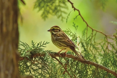 在丰台区高鑫公园“遛弯”的白眉鹀。佟浩 摄