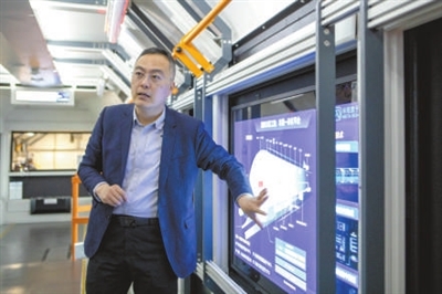 “这是一台公司自主研发的虚拟连挂智能列车。”王伟介绍,列车采用自主虚拟编组控制系统,在高峰期时可以进行连挂,从而满足大流量旅客的需求,提升整体运力。在平峰期时,运力需求没有那么大,就可以将长编组变为短编组,例如将六节的车厢变为三节,既节能又省力。对于一干多支的情况,在分岔口时可以根据乘坐需求分为两支短编组同时运行,避免乘客多绕路。此外,还可以连挂运货车厢进行独立货运,既节省了成本又提升了整体利用率。”