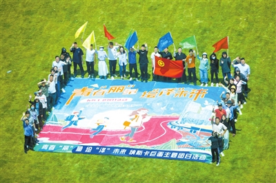 本报讯(记者 赵自谦 通讯员 王敏)5月21日,丽泽金融商务区团工委联合北京金港场道公司、中建八局土木公司、北京金唐丽控置业公司在金唐西联大厦南广场共同开展了一场别开生面的“青春‘丽’量 绘‘泽’未来”纳斯卡巨画主题团日活动。