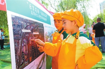 马草河公共空间改造提升规划图吸引孩子们驻足观看。