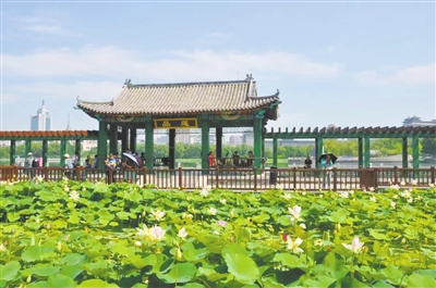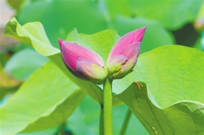“双头并蒂出天然,呈瑞悬知好事连”。近日,一朵罕见的并蒂莲在莲花池公园悄然出现,这是莲花池公园今年夏天的第一朵并蒂莲,更是自然界中一道难得的美丽风景线。这朵并蒂莲品种为“玫园秀色”,是粉红色单瓣品种,端午节期间还是花苞状态。两朵粉红色的花苞紧紧相依,亭亭玉立,宛如一对孪生姐妹,在绿叶的映衬下显得格外娇艳。