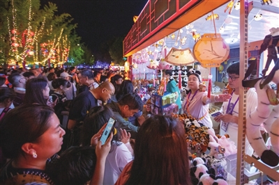 灯会现场游人如织,人们纷纷拍照打卡。原梓峰 摄
