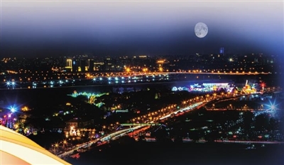 整个园博园如同一个巨大的色彩斑斓的画卷向远方徐徐展开,装点出中秋夜空下的园博不夜城。原梓峰 摄