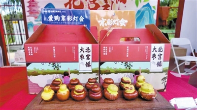 本报讯(通讯员 贾巍)“京彩灯会”上,北宫镇精心挑选一众礼物集体亮相,有荣获国家地理标志认证的“长辛店白枣”,有北宫人亲手制作的枣花饼、枣糕、枣馍馍……北京建筑大学的青年学子以北宫景色为灵感设计的城市肌理画摆台和漂流漆扇等文创品更是首次亮相,成为文创市集区最火爆一角。