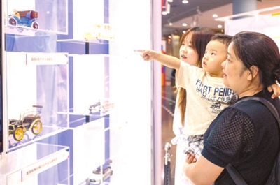 汽车模型吸引众多游客驻足参观。 赵自谦 摄
