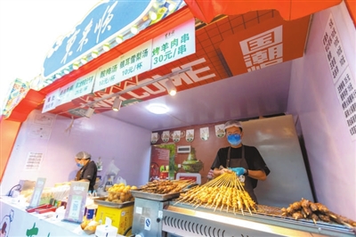 招牌火焰山牛排是北京国际饭店高空景观旋转餐厅专门为此次灯会游客推出的平价牛排,肉质鲜嫩、口感绝佳,切成小块现场煎制,方便游客边逛边吃。