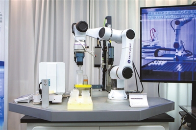 本报讯(记者 原梓峰 郭晓妍)只需人机交互指定检测项目和设置移动路线,机械臂夹着夹爪就开始了工作:自动拧开瓶盖,利用超声波检测瓶内液位高度,自动安装吸管并吸取样本……一份液体取样即可完成,后续将进行全自动化地称重、检测。这是北京戴纳实验科技股份有限公司(以下简称“戴纳科技”)自主研制的“黑灯实验室”液体自动精准称重机器人。