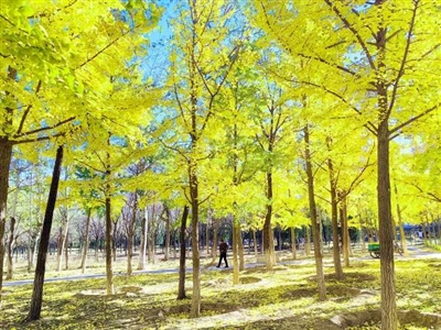 本报讯(记者 赵智和 实习记者 姜欢)“碧云天,黄叶地,秋色连波,波上寒烟翠。”近日,永定河畔绿堤公园内,寒冬来临前的深秋献上了一份独属金黄季节的浪漫。