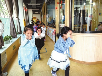 随后,消防员们组织幼儿开展疏散逃生演练活动,增强幼儿的消防安全意识,提高自救防范能力,做到在发生火警火灾时,临危不乱按照消防逃生路线安全疏散。随着警报声响起,孩子们在老师的带领下,用小手捂住口鼻,迅速而有序地撤离到安全地带。安全撤离之后,各班教师清点幼儿人数并汇报撤离情况,确保每位幼儿无一人遗漏。