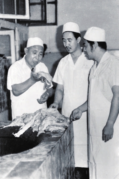 那么,月盛斋为何能吸引如此众多的忠实拥趸,甚至让人不惜长途跋涉也要一尝其味呢?答案或许就藏在每一位老字号传承人的绝活儿之中。“原先月盛斋煮肉的锅具都是选用直径120厘米、深度90厘米的铁锅,只有让锅里边每块肉都受热均匀,才能入味深透,所以我们的煮肉师傅在学徒时都练就一项绝技——翻锅。”李静爽告诉记者,“煮一锅肉平均需要5到6个小时,一次煮肉量都在300公斤上下,煮肉师傅就一直守在煮锅前翻煮。我们每位师傅,胳膊上都是腱子肉,工龄越长,身体越壮实。所以我们也经常说,做好一道美食、炖好一锅肉,除了历代传承的技艺,还需要耐得住性子、守得住初心。”