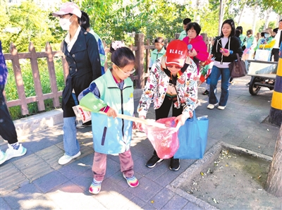 来自首医大附小艺术实验小学的唐颂说:“我喜欢和小伙伴们一起戴上手套、拿起垃圾袋,就像是在做一场寻宝游戏,但是我们要找到的‘宝藏’其实是那些被人不小心留下的垃圾。我感觉自己像环保小英雄,河边干净了,小鸟小鱼也开心。”