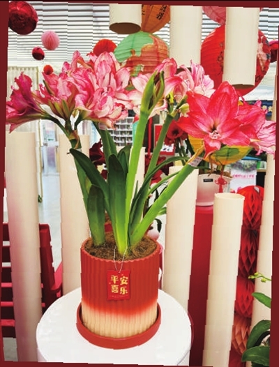 赏花之余,现场还可以买到“花孔雀”“阿拉斯加”等知名盆栽品种,以及蜡封朱顶红,这种创意花卉通过将根球用特制蜡封闭,可以放置在任何透明容器中,无需浇水、无需土壤。当花朵凋零后,只需撕开蜡封,就可以将其种植到花盆中,等待来年再次绽放。