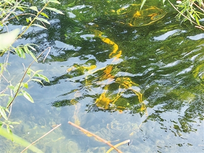 记者在行走过程中发现水底有一辆橘黄色的自行车若隐若现,应该是共享单车,也许是大风把它吹到了河底,记者试着够了几下也够不着,只好放弃打捞行动。再往东走,有几十平方米的区域铺满了一层杨絮和树叶。记者观察到,杨絮是从岸边几棵杨树上飘落的,踩上去沾满鞋底。记者还发现,因为河水上涨,原本的跨河汀步已经不能正常通过,亲水步道还需要建设完善。河两岸每隔一段距离就会看到一个排水口,黑洞洞的,有些突兀、可怕,如果像“箱体三化”工作那样进行美化一下也许更好。从水中的共享单车、岸上的杨絮和淹没的跨河汀步等情景来看,确实需要尽快启动“点靓凉水河”专项行动。