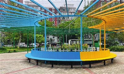 不仅要让居民有地方坐,还要让居民坐得舒服。为此,社区党委通过召开党员代表会、居民协商议事会选定座椅样式、确定安装位置后,还邀请专业设计团队参与座椅的设计。历时3个月的时间,环形休闲座椅在小区内的花园里“架起”,表面还涂上了黄、绿、蓝的喷漆,不仅为小区居民带来了更加舒适的露天休息场所,同时也成为了社区一道亮丽的风景线。