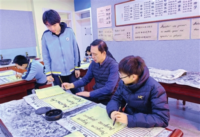 丰台外国语学校校长刘忠毅介绍,孙国至曾经是一名军人,他的言行举止诠释着军人的爱国情怀和优良作风,这本身对学生就是一种引领,也是很好的思政课。他开创的中外文书法课也让学生感到耳目一新,受到学生们的喜爱和认可。我觉得书法是中华传统文化的瑰宝,中外文书法是传承更是创新,也许会成为打开世界窗口的一把钥匙。