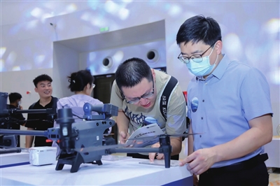 与会嘉宾参观无人机展品。