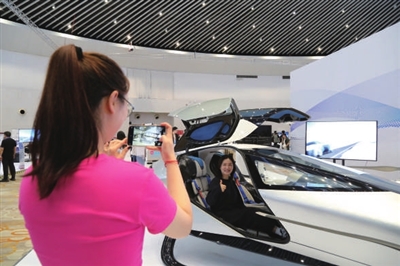 与会嘉宾体验飞行器。薛嘉茵 摄