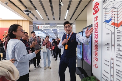 记者们在丰台区政务服务中心参观。姜灏 摄