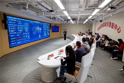 在智慧政务数据中心,大屏幕上各类政务服务数据清晰可见。姜灏 摄