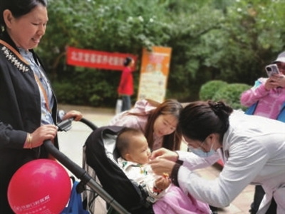 “健康义诊”打卡区由佳静口腔和中海九浩苑养老驿站联合提供服务,专业医护人员免费提供口腔健康检查和咨询,通过发放宣传册普及保健知识,增强大家的口腔健康意识和自我保健能力。中海九浩苑养老驿站为老年居民提供血压、血糖等基础检测,并针对常见慢性病给出保健建议。