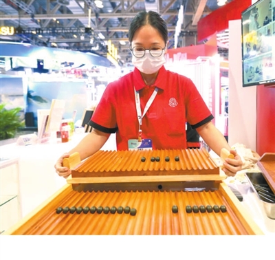 本报讯(实习记者 姜欢)同仁堂非物质文化遗产“安宫牛黄丸制作技艺”搓丸示范、中医药健康咨询、制作中药草本香囊……北京同仁堂展馆(以下简称“同仁堂”)展台吸引了诸多海内外游客驻足体验。