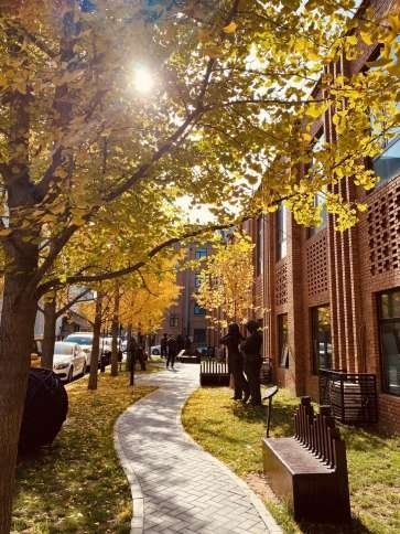 当秋叶飘过永乐文智园,为新村涂上了文化的颜色。这里是北京市级文化产业园区,众多文化艺术企业云集在此,为老棉纺厂插上腾飞的翅膀。