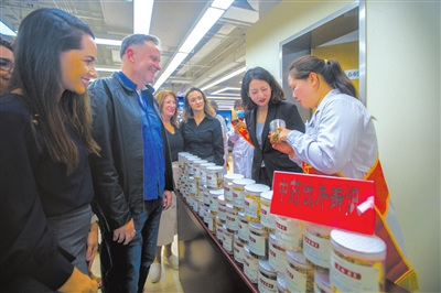 药剂师正在为远道而来的巴西学生详细讲解每一种中草药的功效。赵自谦 摄
