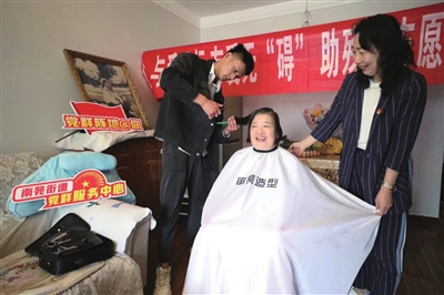 “情暖南苑”志愿服务队志愿者为居民上门理发。