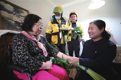 不仅如此,“情暖南苑”志愿服务队中的医护人员还为残疾人士进行了量血压、测血糖等常规项目的检查,并针对残疾人士的身体状况给予合理的健康调理和科学用药建议,讲解疾病预防保健知识,解答残疾人士的健康疑问。此外,快递外卖小哥化身“代购员”为残疾人士家庭送去了鸡蛋、黄瓜、西红柿、芹菜等新鲜果蔬,让他们感受到了实实在在的贴心关怀和温暖。