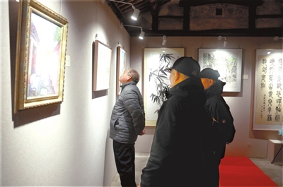 观众驻足欣赏作品,感受老镇历史风貌。