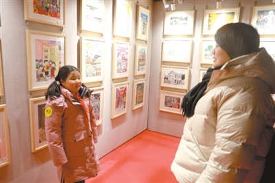 在展览现场,孩子们为观众讲解自己作品的意义。